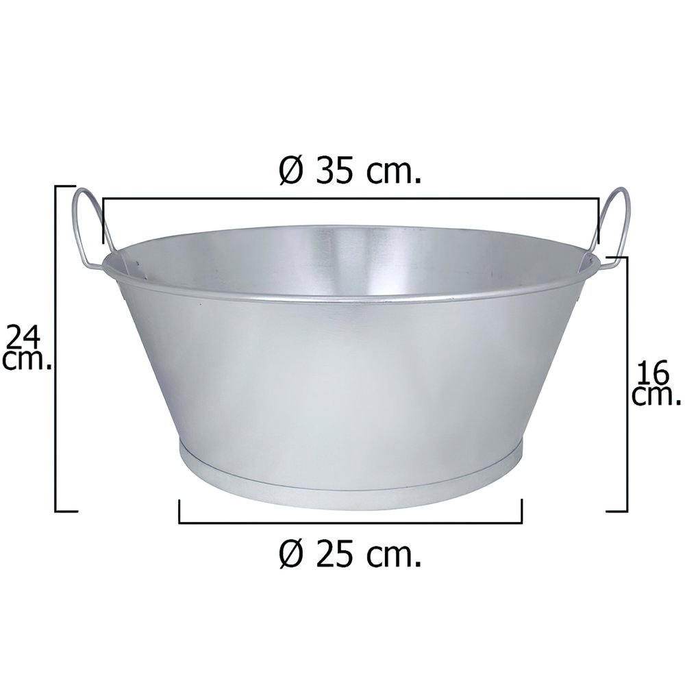 Barreño galvanizado-Baño 14″. – Medida: 35×16 cm. – Capacidad: 10 litros. – Realizado en material de primera calidad. – Articulo también conocido como barreño de matanza, barreño metálico, baño galvanizado, palangana.