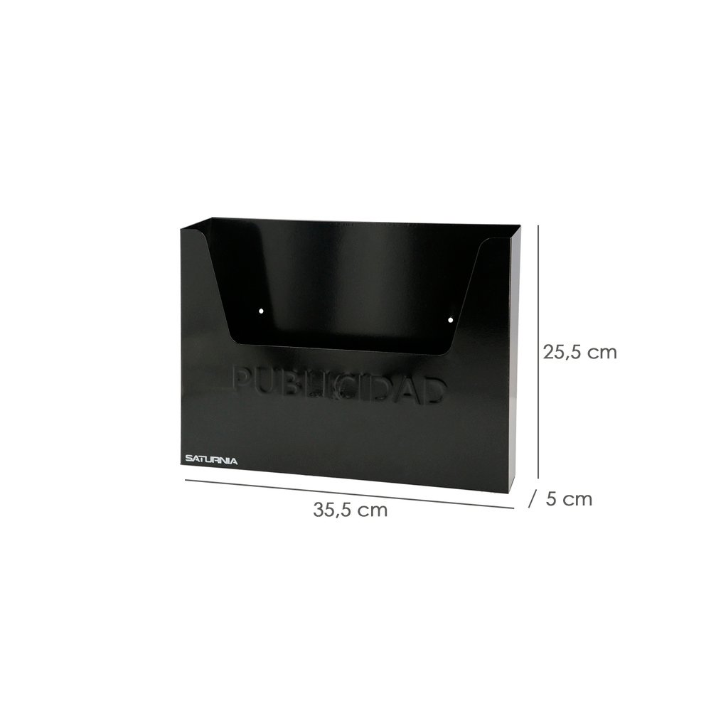 Cesta publicidad – Medidas: 355 x 50 x 255 (Alt) mm. – Realizada en metal. – Color antracita. – Artiuclo conocido como cesta propaganda, buzon propaganda, buzon publicidad.