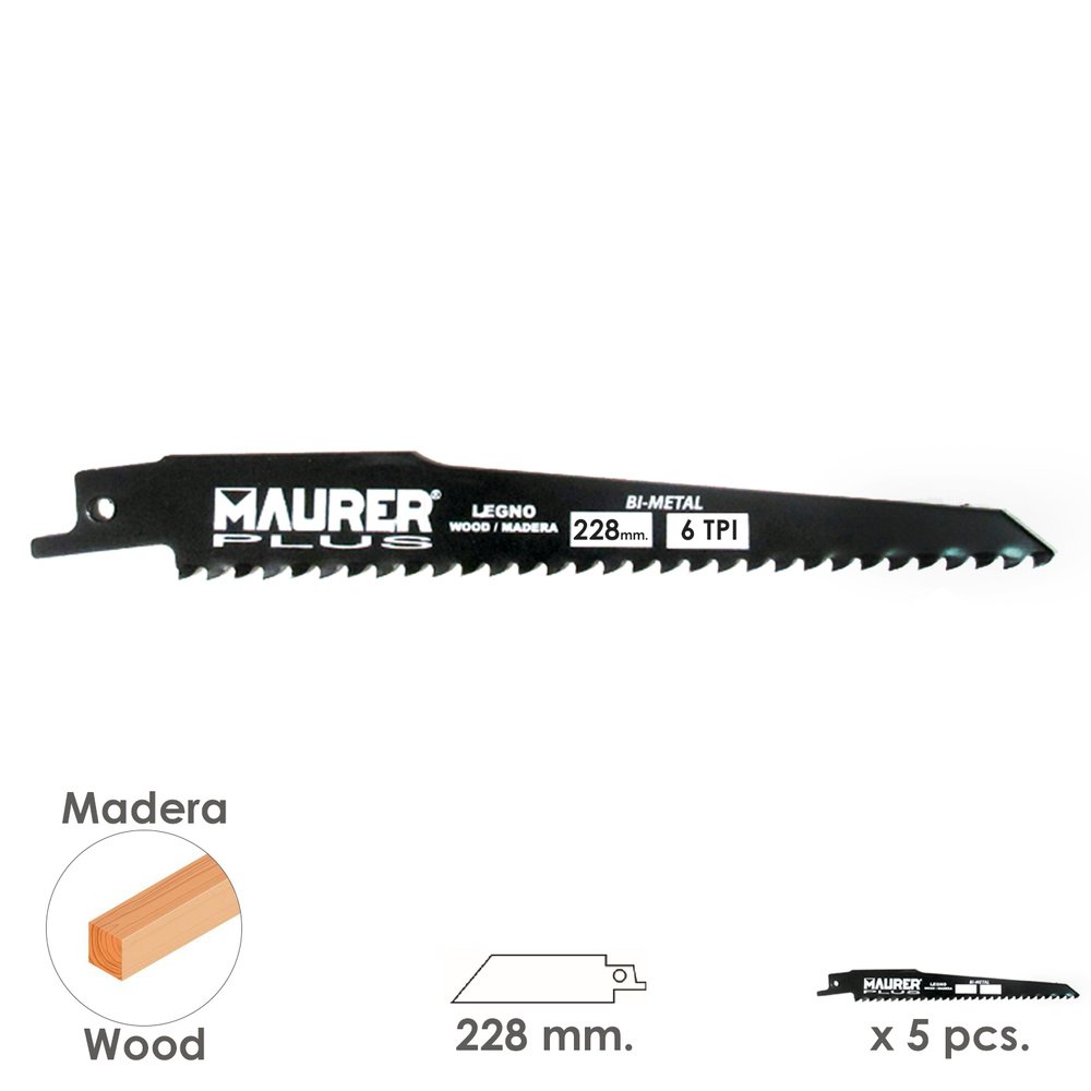 Hoja Para Sierra Sable Madera 228 mm. – 6 TPI Tipo Bosch (5 piezas)