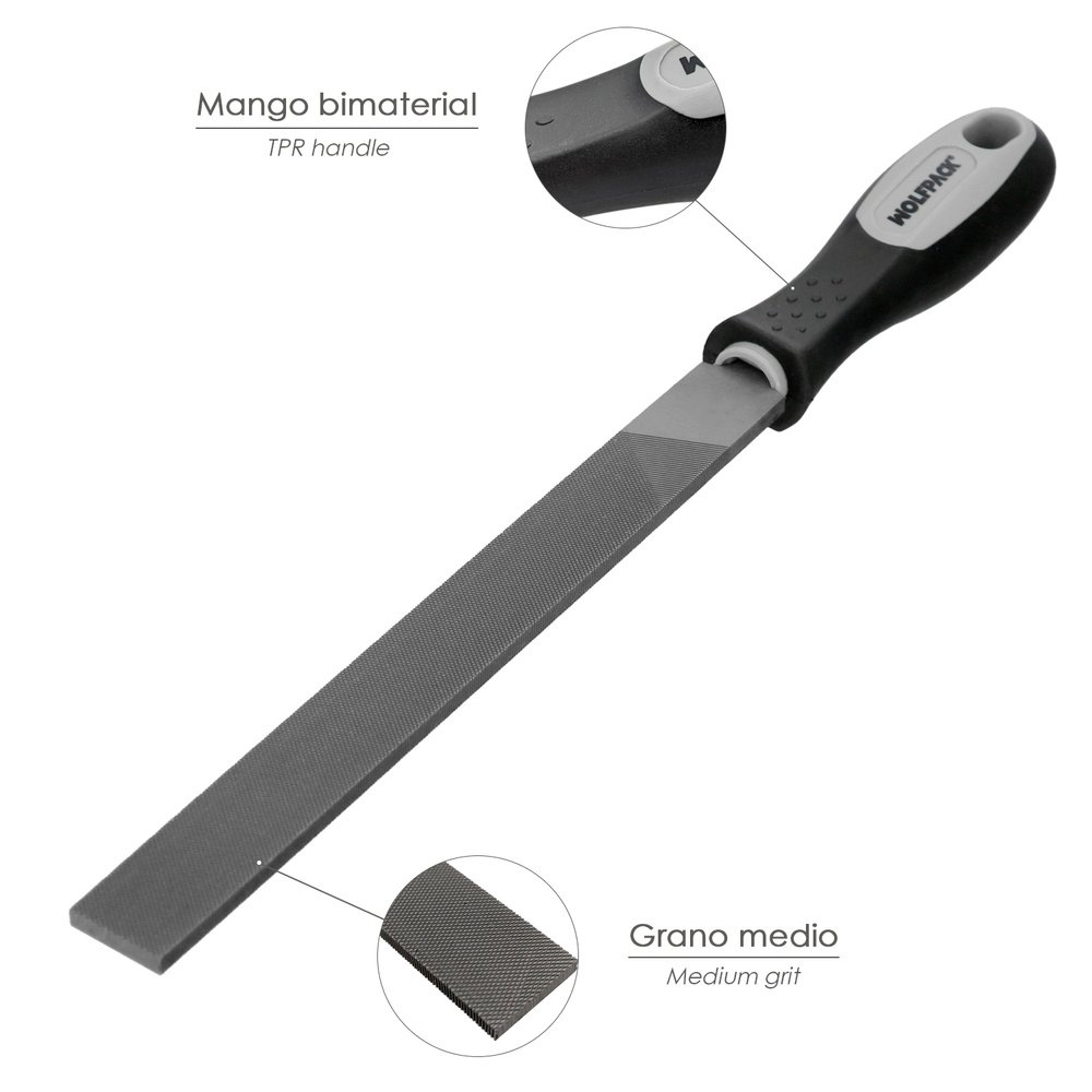 Lima Wolfpack entrefina con mango paralela 4″ – Con forma paralela entrefina. – Longitud: 4″ – Terminación entrefina, para trabajos de repaso y acabado. – Forma paralela: para rebajar la anchura y el grueso de una pieza.