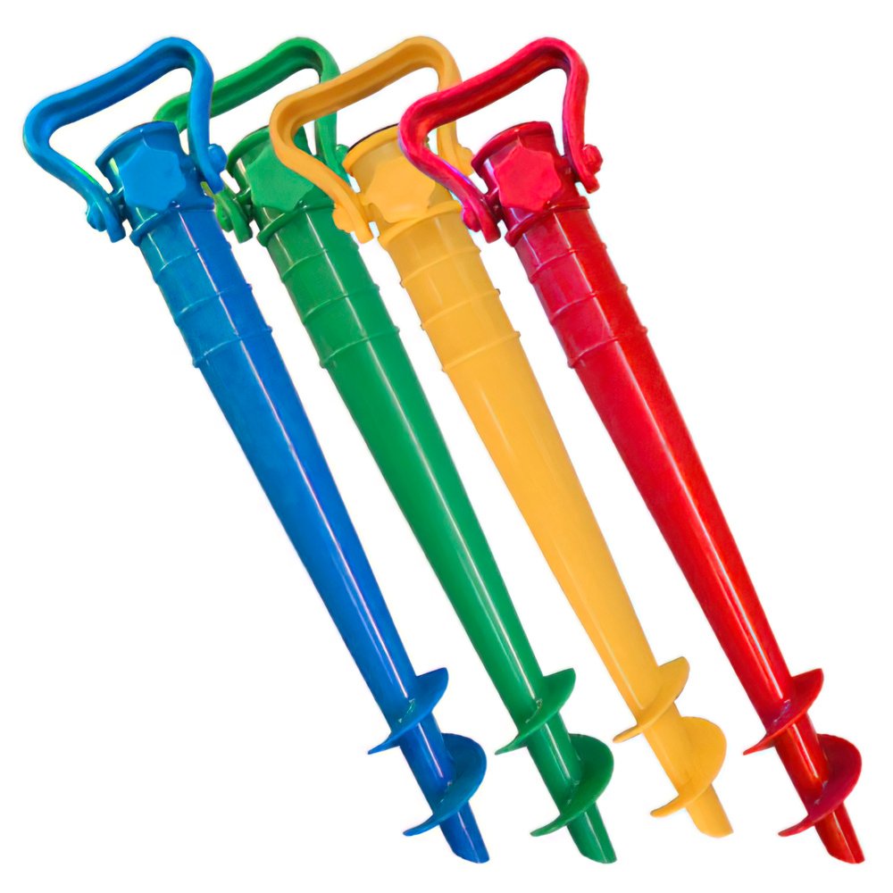 Pincho para sombrilla – Realizado en plastico ABS.– Colores surtidos.– Asa incorporada, facilita su introduccion en la arena.– Peso: 200 gramos.