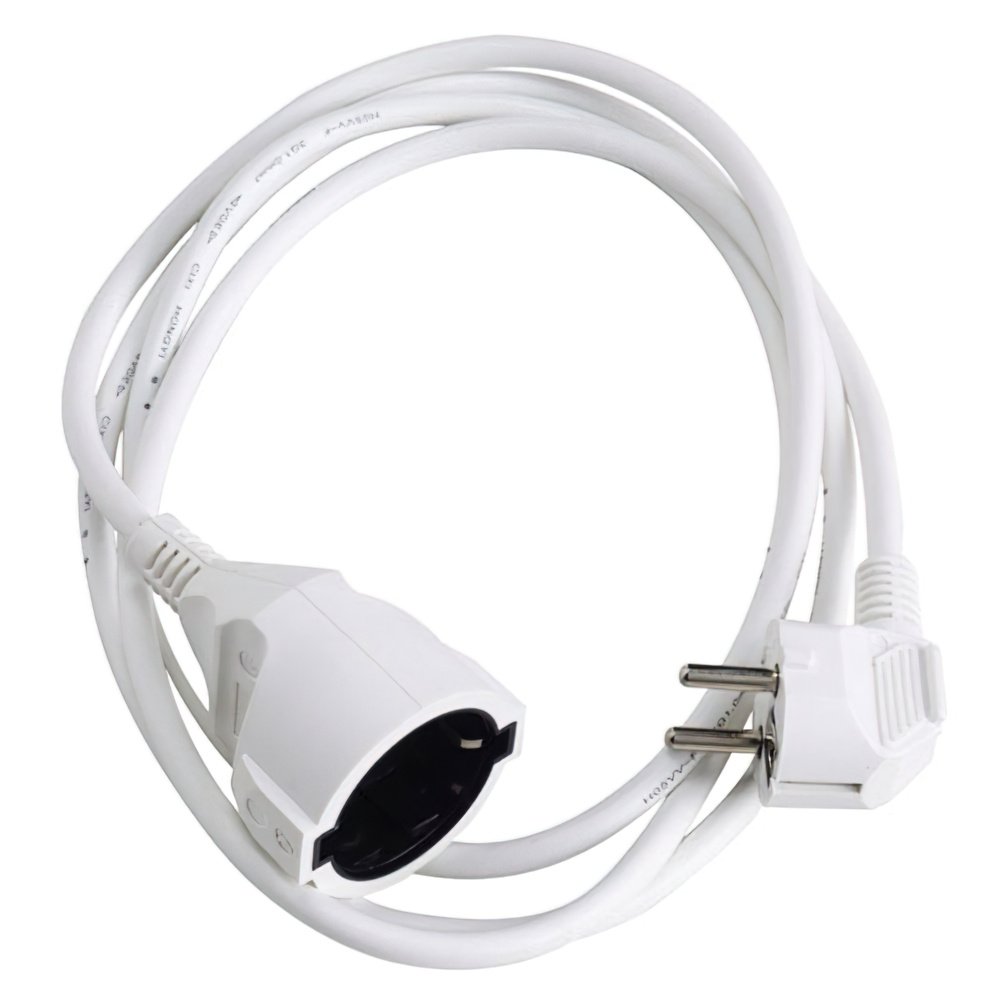 Prolongador cable – Longitud: 2 metros. – Sección: 3 x 1,0 mm. – Color blanco. – Articulo tambien conocido conocido como regleta tomas, regleta enchufes, ladron, enchufe múltiple, alargadera, extensible.