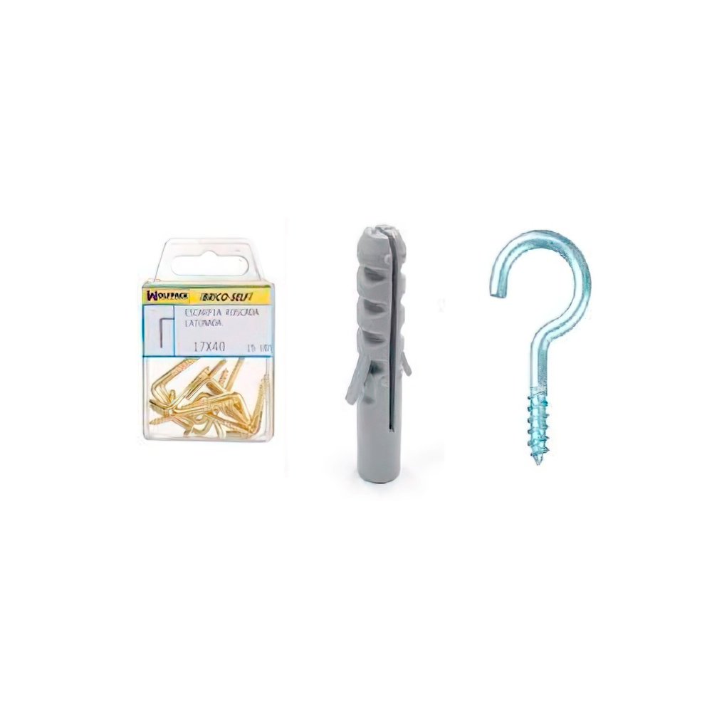 Tacos self, Bricoself, Brico-self taco nº 4 con hembrillas abiertas. – Útil para colgar elementos en la pared. – Medida: 17 x 40 mm. – Envase de 10 unidades. – Articulo también conocido como: cancamos.