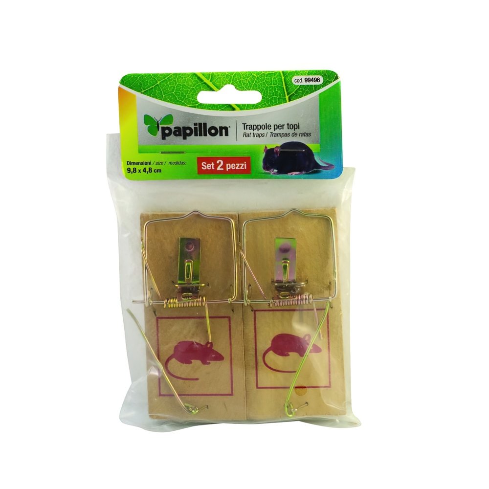 Trampas ratones madera (2 unidades) – Largo : 9,8 cm. – Ancho: 4,8 cm. – Contenido: 2 piezas – Mantener fuera del alcance de niños y animales domésticos