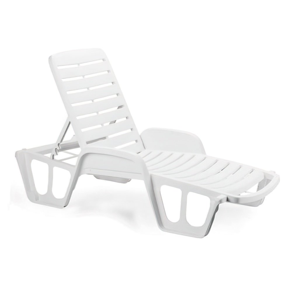 Tumbona resina blanca. – Medida: 71x192x100 cm. – Apilable. – Color blanco. – Ideal para playa, jardin, terraza, etc. – Artículo tambien conocido como hamaca,